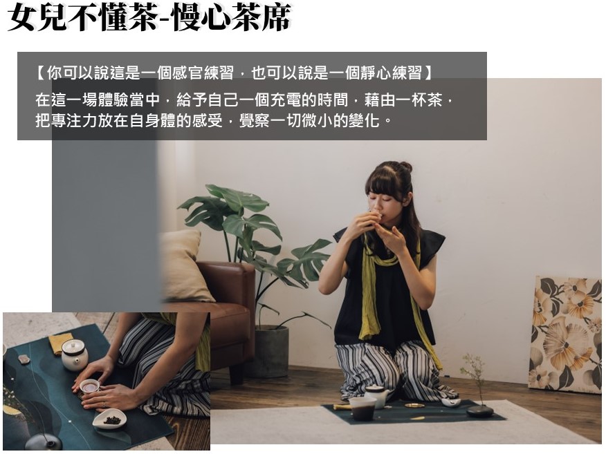 ※ 如欲參加「女兒不懂茶–慢心茶席」紓壓工作坊,請點選右方「立即報名」完成報名,額滿為止!