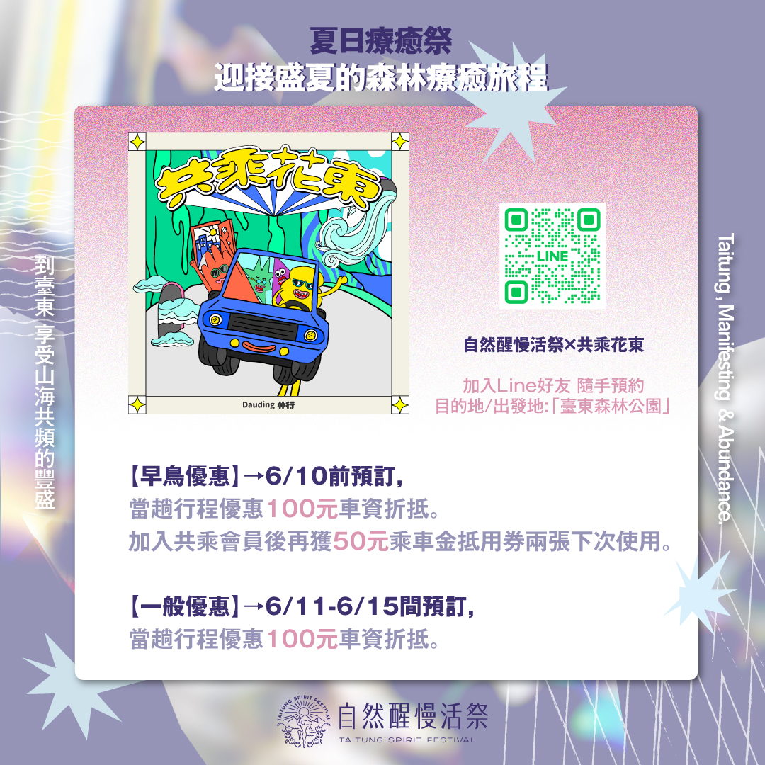 共乘花東×自然醒慢活祭 —醒粉專屬優惠