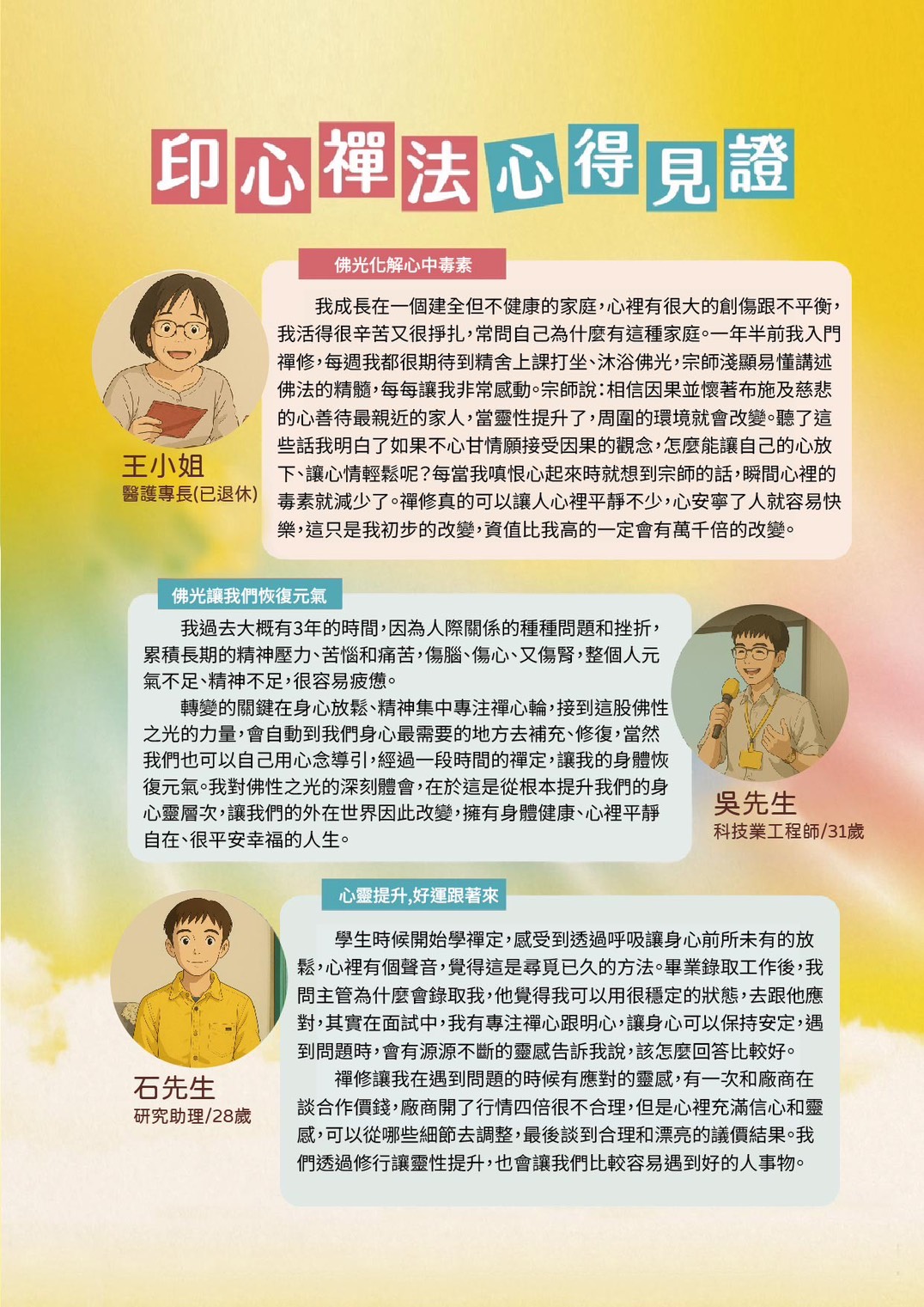 人有身心靈,在地球時空裡會不清淨的齡干擾,身體會不好、做事不順、生意做不好、賺不了前等,經常生病、遇災難。藉由佛性之光清淨靈性、干擾、阻礙就會減少,命運就會改變。