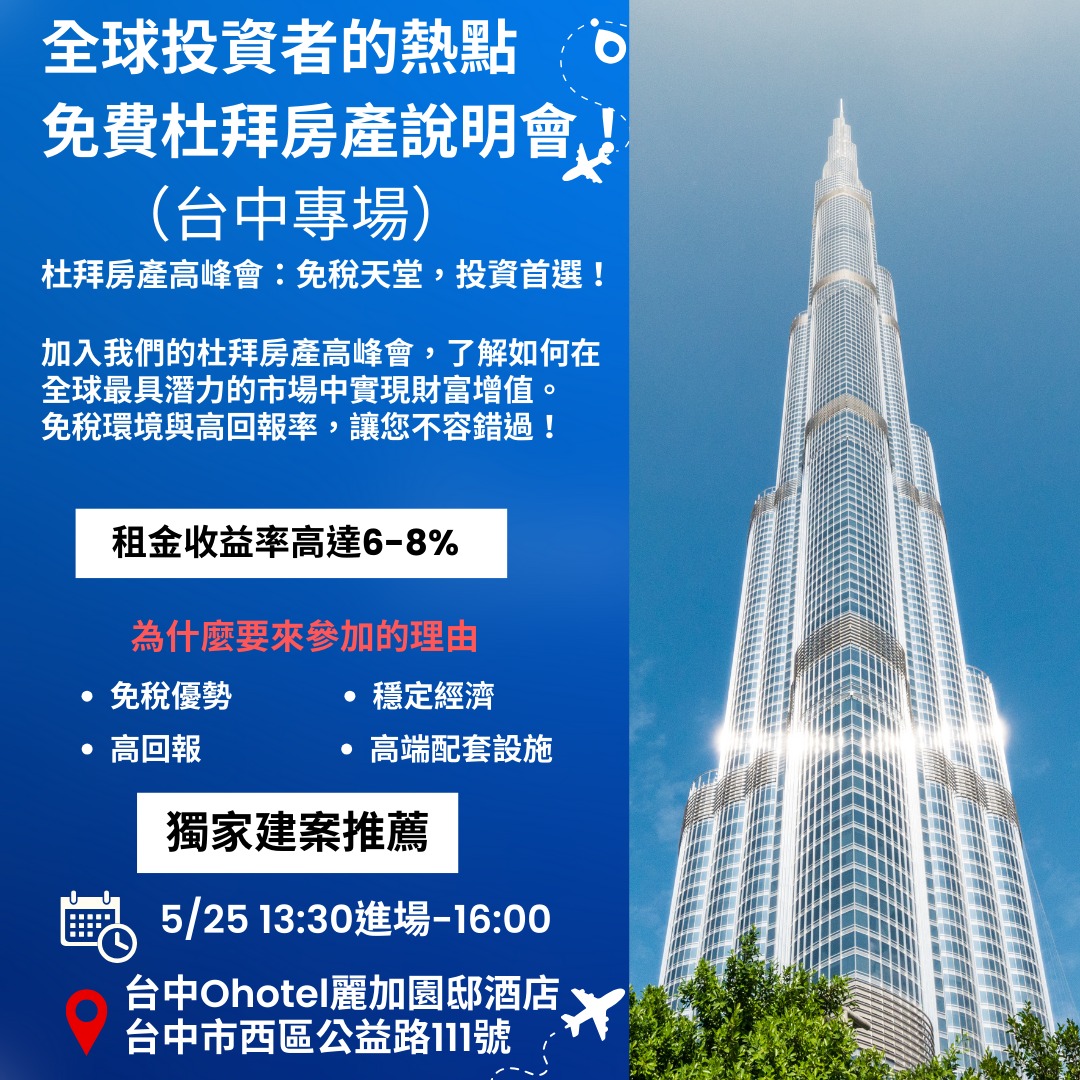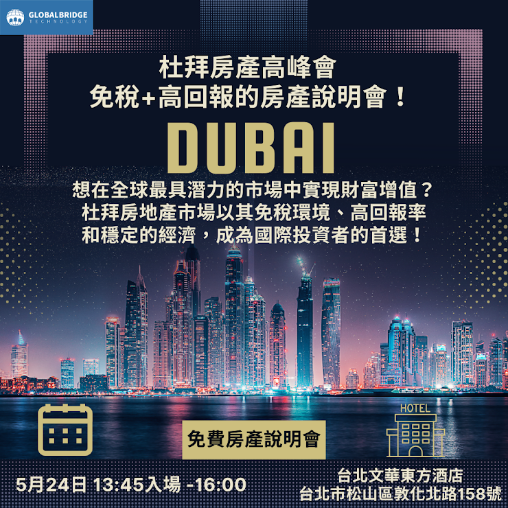 【杜拜房產說明會】免稅天堂+高回報的投資新藍海!