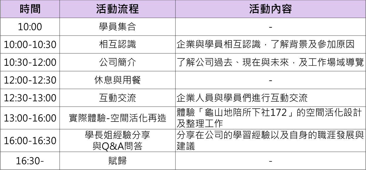 - 活動皆全程免費,並提供餐食、保險及接駁。