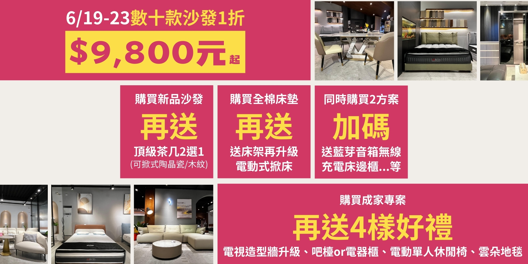 1.現場數十套出清:「限量1折起」最便宜只要9800元起,就能為家裡換一套新的沙發。