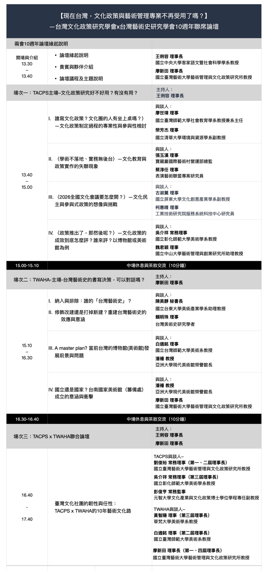 —台灣文化政策研究學會x台灣藝術史研究學會10週年聯席論壇