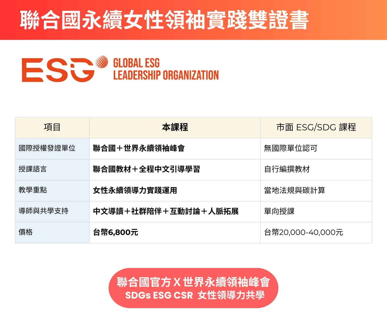 聯合國永續女性領袖實踐雙證書|官網直發證書,全球唯一中文輔導考試