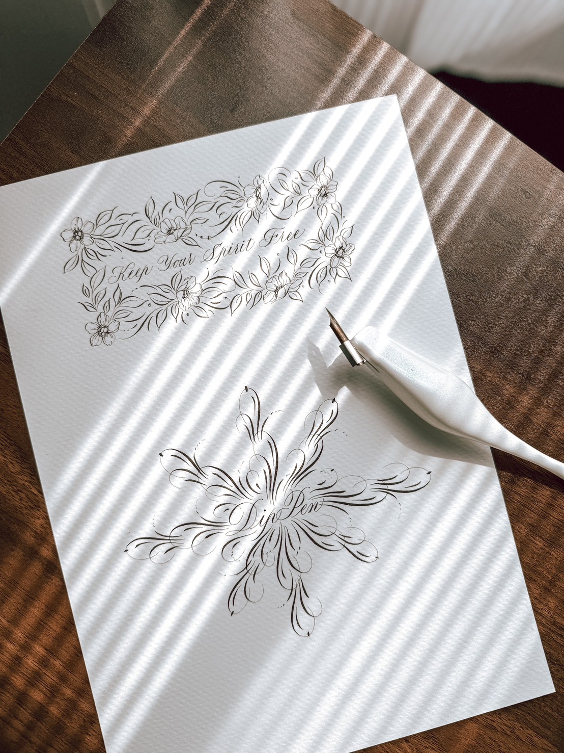 學習沾水筆使用技巧。 沾水筆是一個需要不斷沾墨水的工具,故而其名而生。現在沾水筆較為常見的使用是用於書寫英文書法,搭配不同設計、材質的筆尖,可以使用在不同字型練習,也更能根據使用者自身狀況,選擇適合的筆尖柔軟度。