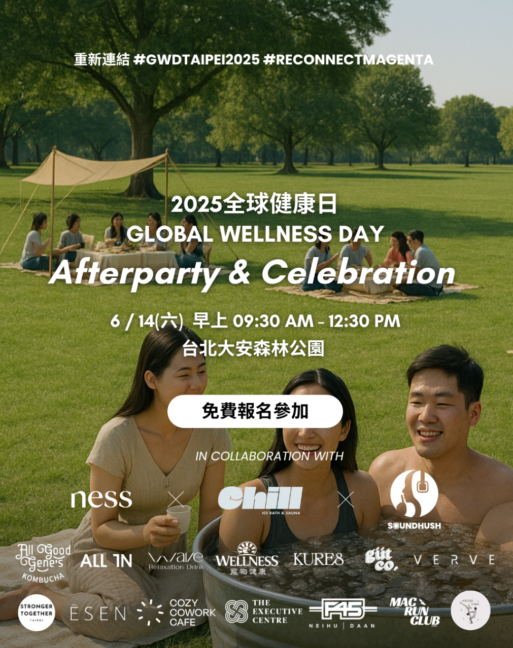 當身體長時間被困在冷氣房裡,其實更容易疲累、思緒停滯。今年 Global Wellness Day 的下半場,我們邀請你從室內走出來、跳進冰池、躺在草地,透過冰浴、音樂、茶飲、伸展、靈感刺激與溫柔連結,一起體驗最 chill 的早晨慶典 wellness 派對。這不只是一場活動,而是一場融合自然、創意、療癒、社群與探索的野餐式 wellness celebration!