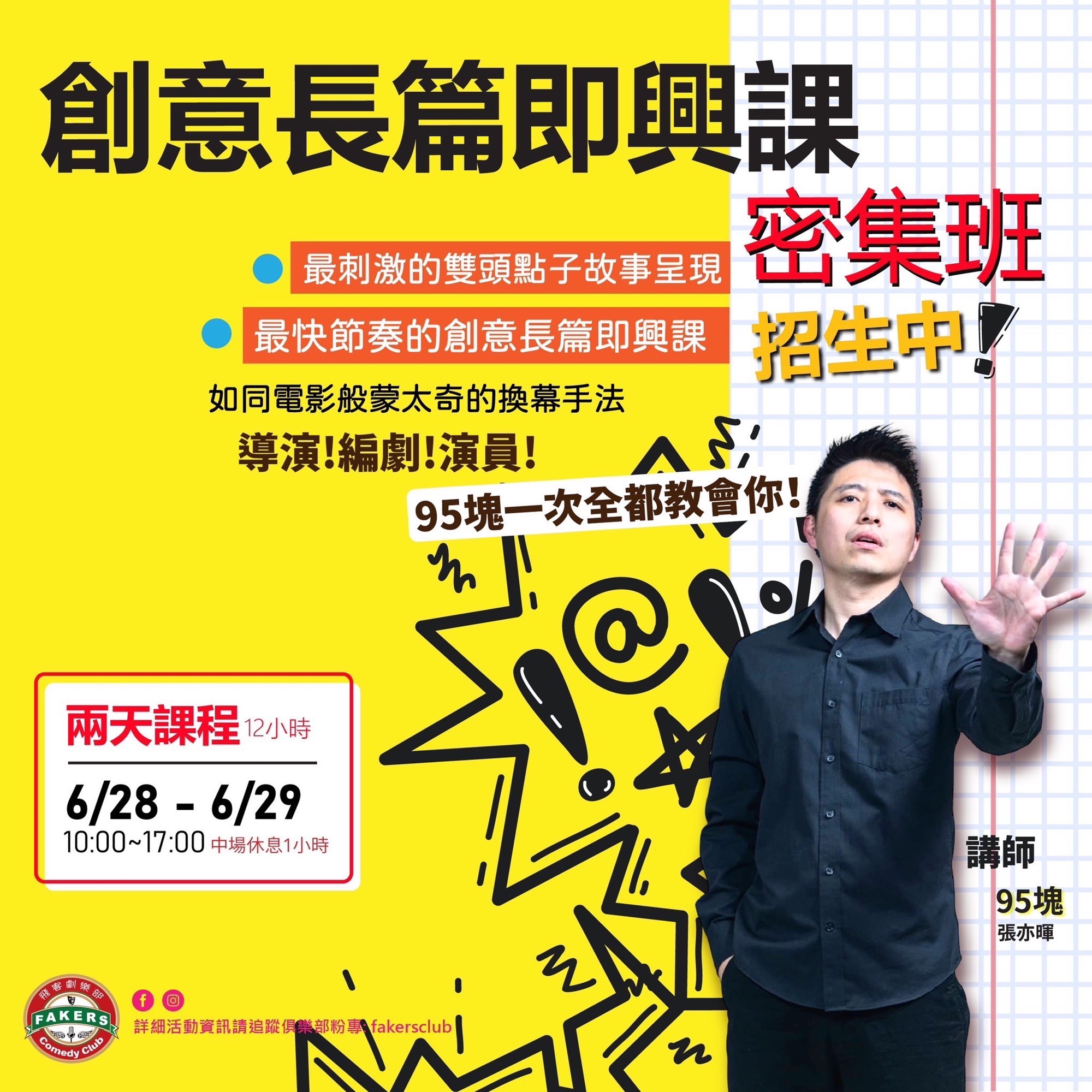 飛客俱樂部六月份特邀前輩$95老師舉辦短期長篇即興課程!06/28-06/29 10:00-17:00。機會難得!走過、路過、不要錯過!