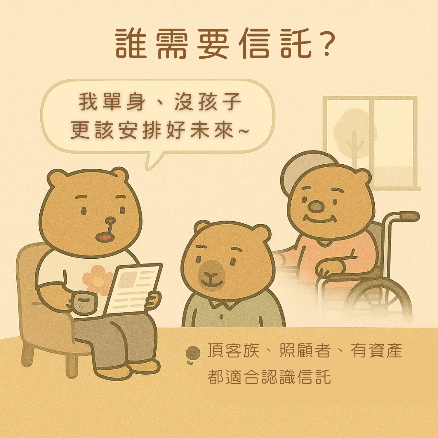 - ❤️ 照顧親人 / 有特殊需求者:期待資金可專款專用、定期撥付,有安全機制