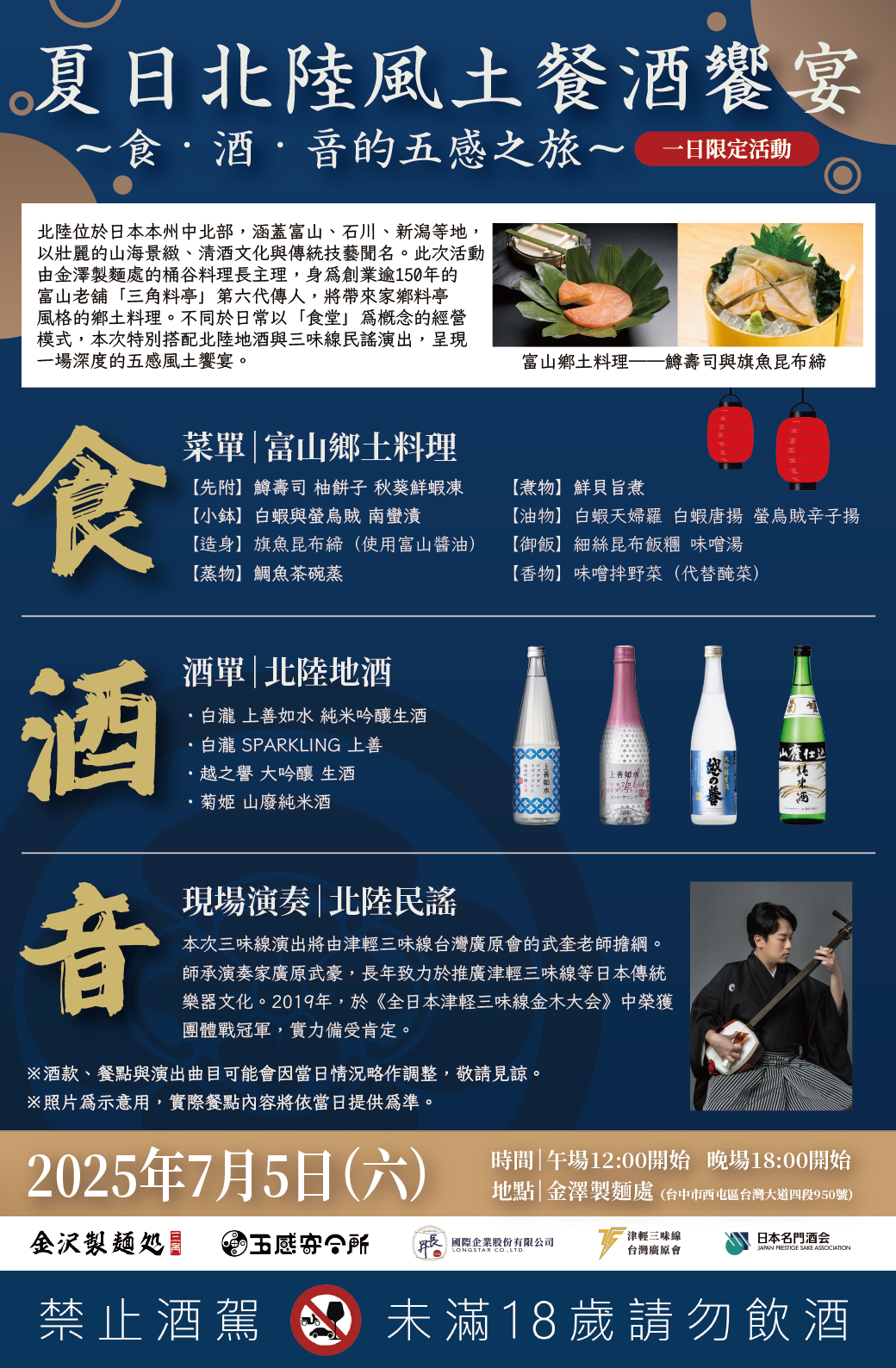 🎐 夏日北陸風土餐酒饗宴 🎐 ~食‧酒‧音的五感之旅~