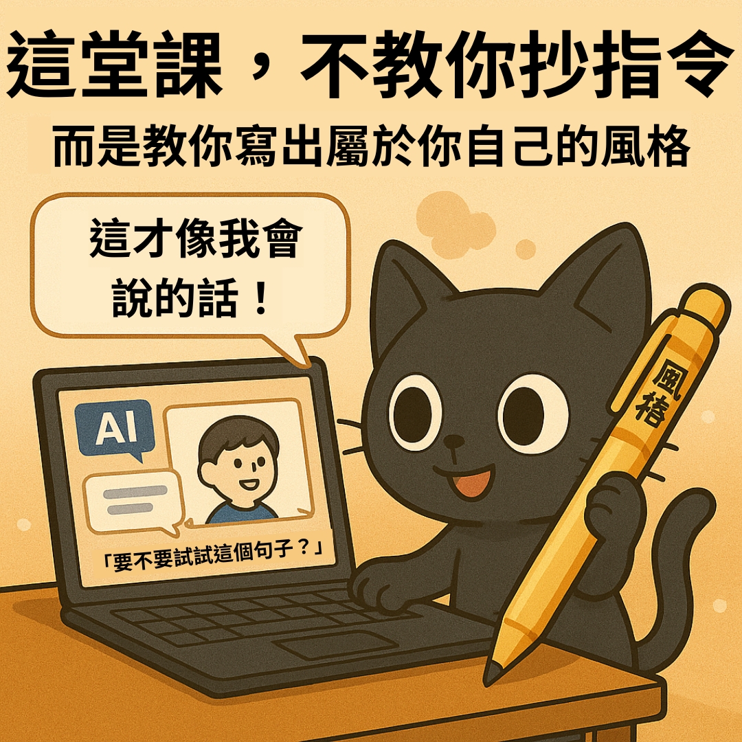 這不是單純教你丟指令給 AI,而是教你「怎麼讓 AI 寫出像你自己會寫的東西」!