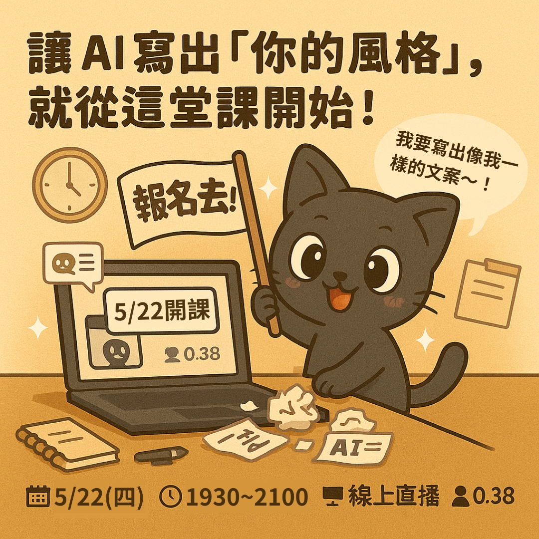 📣 小白也能學會的 AI 寫作課,讓你從此寫文不再卡卡,還能寫出自己的味道!