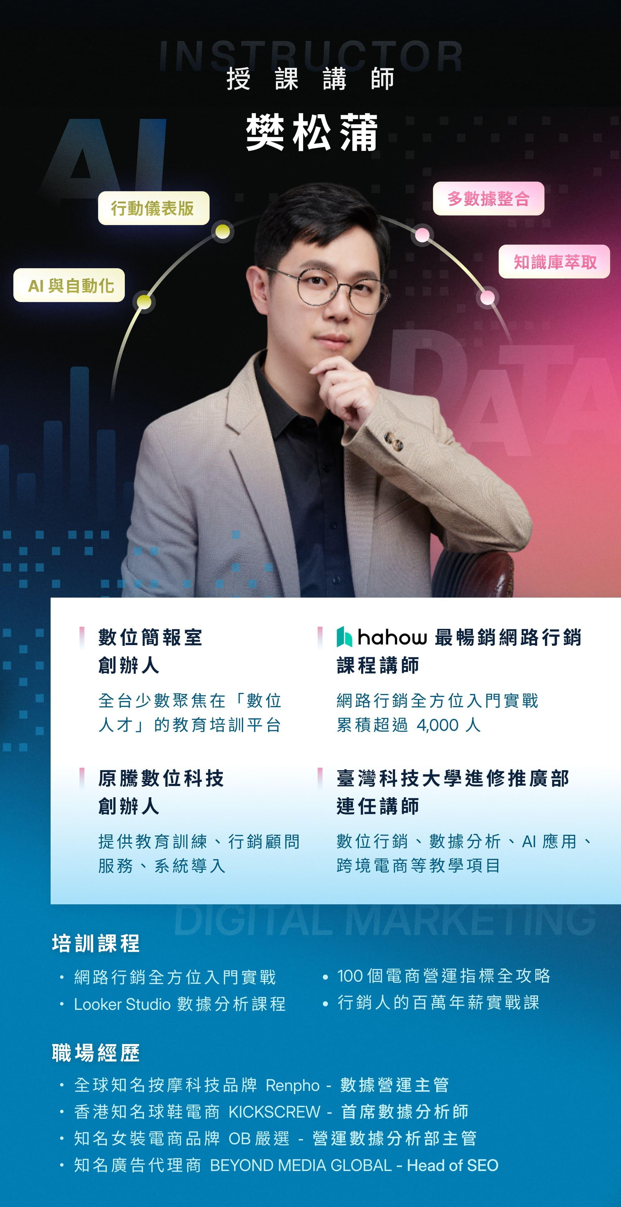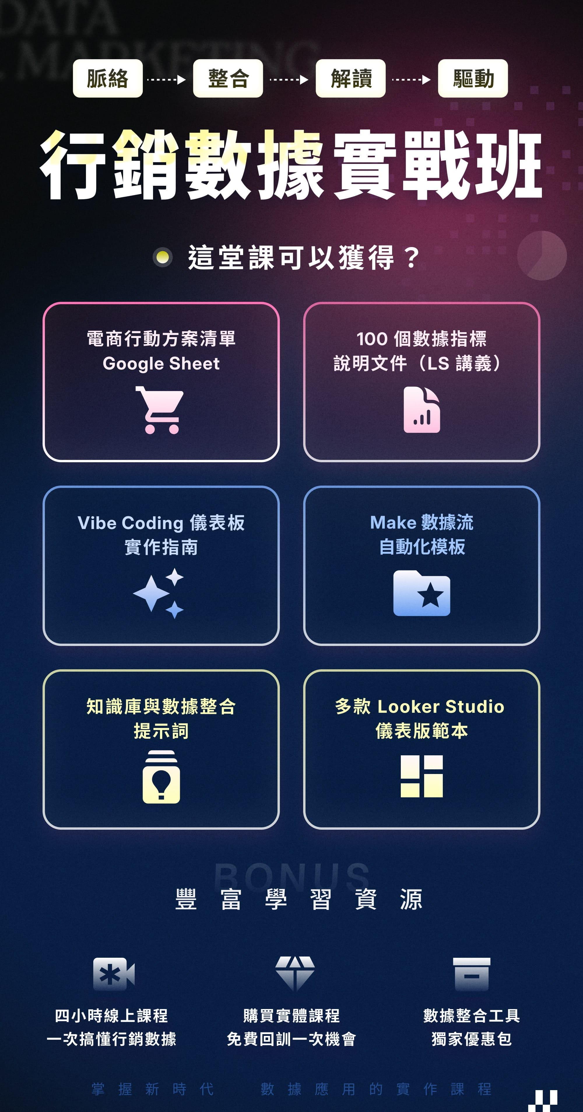 僅需 Google 帳號。課程使用的 Supermetrics、Make.com 等第三方服務, 皆提供 免費試用或教學專案,課中將說明如何啟用。 若你已使用付費版,也可直接套用現有權限。
