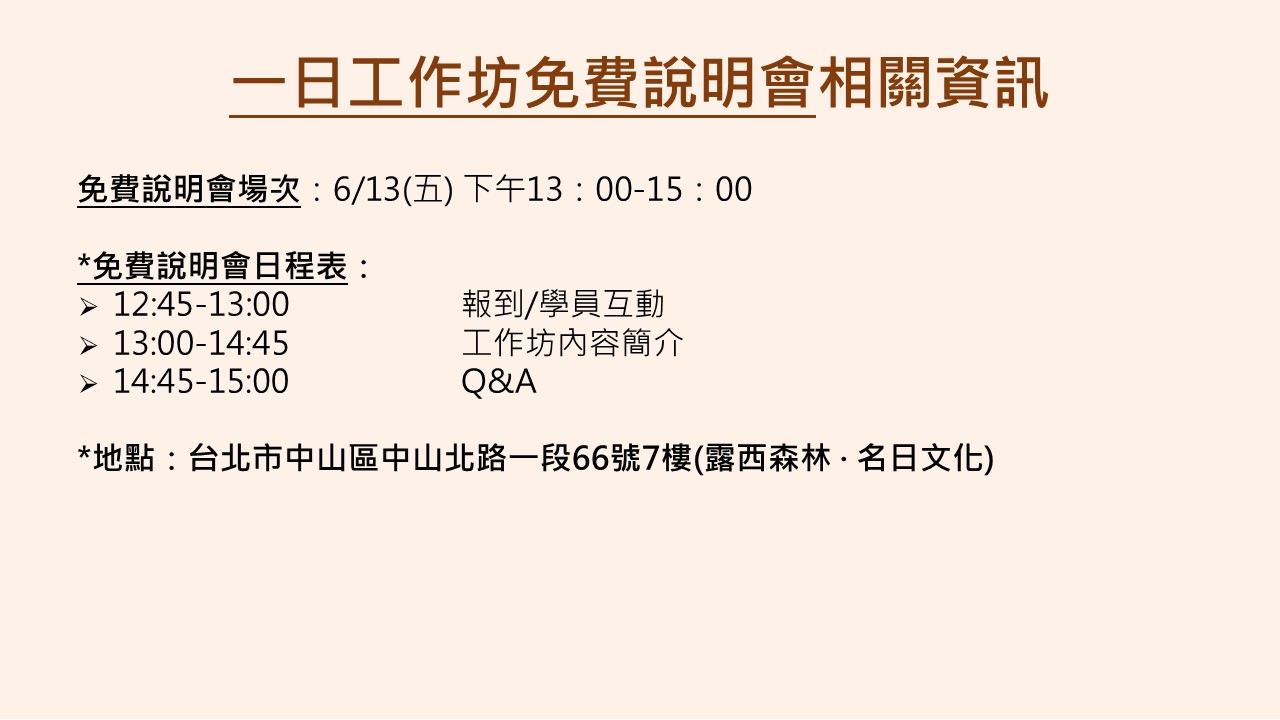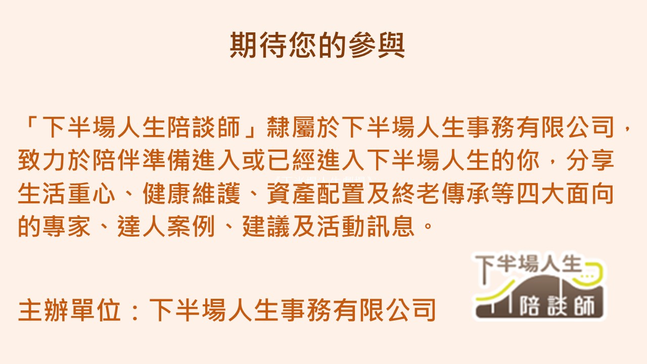【看見下半場幸福藍圖】一日工作坊免費說明會