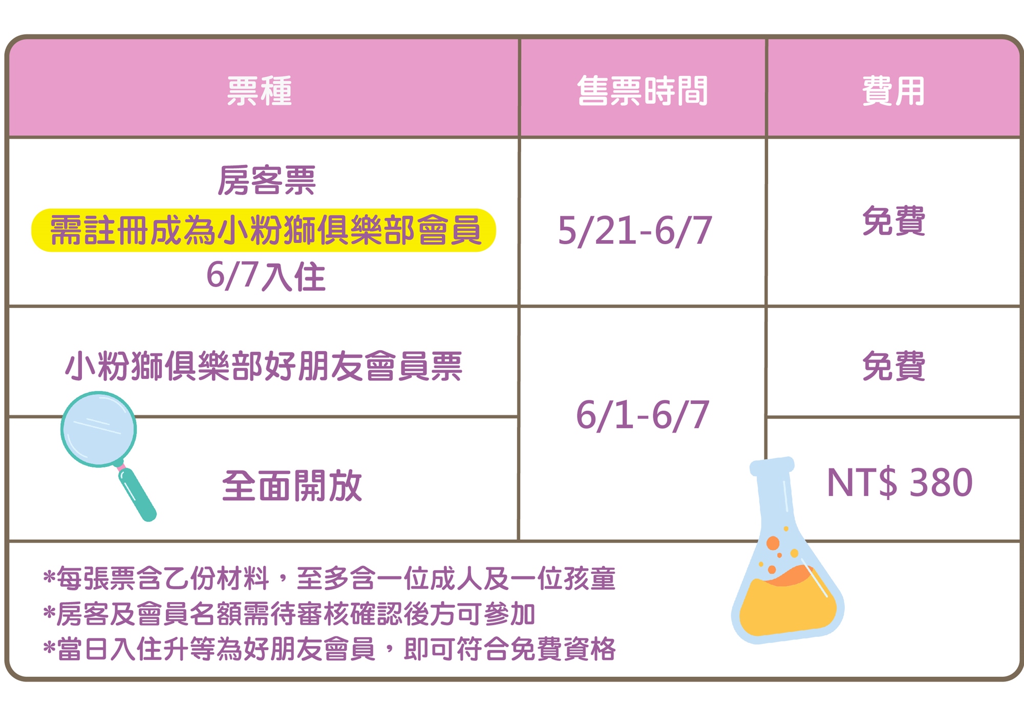 ●注意事項:每房最多兩組免費名額,如超過需另行購買一般票