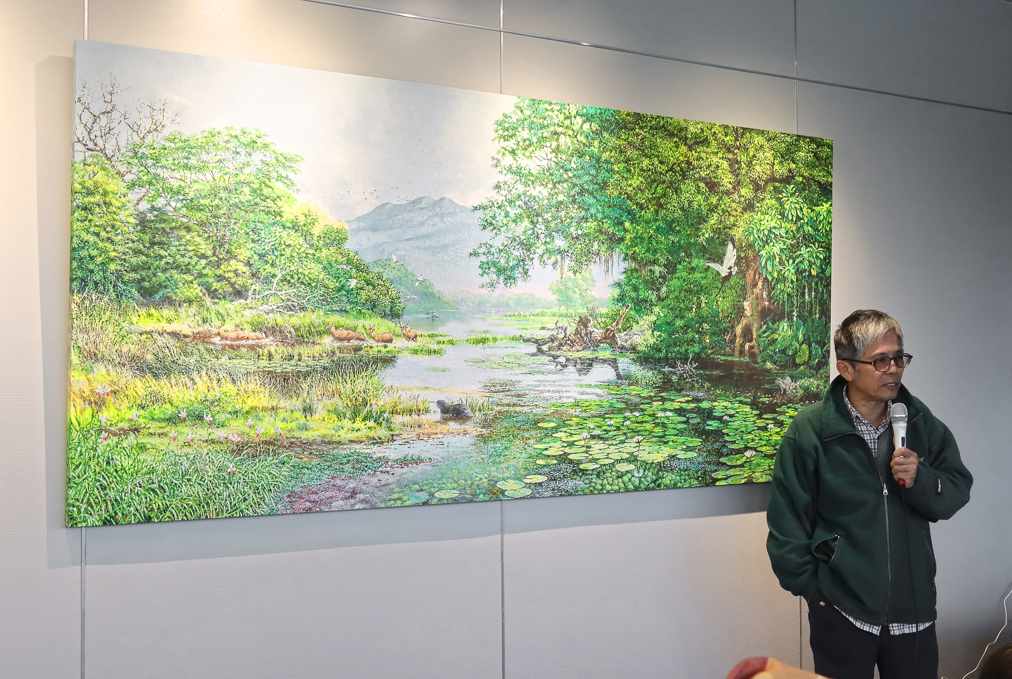 陳一銘老師,是為世居社子島生態專家,其「蠻湮臺北」畫作,臺北是一個歷經巨變的盆地,曾經是滄海、湖泊、沼澤、森林、農田,最終而成為物質文明的水泥城堡。