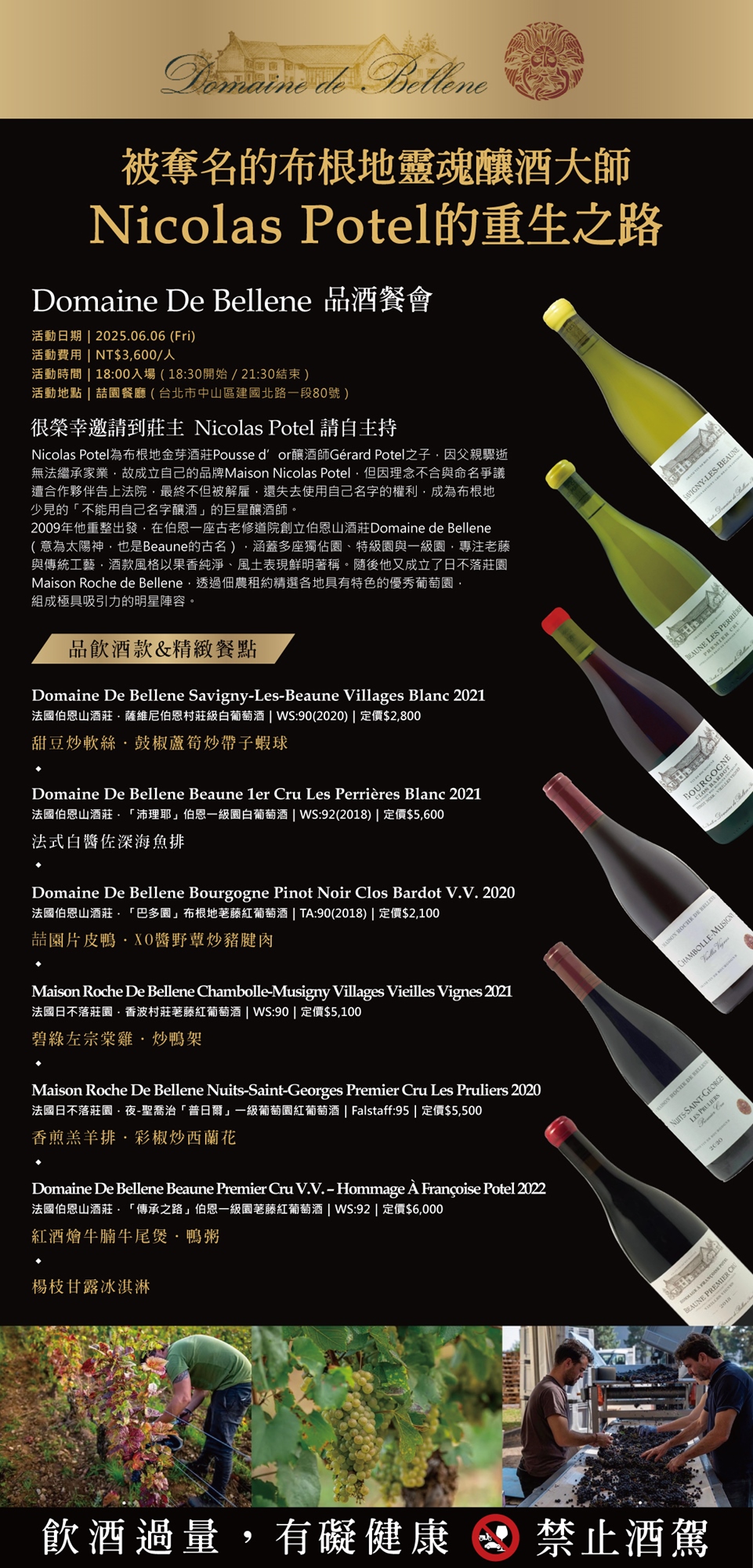 Nicolas Potel Domaine de Bellene X Maison Roche de Bellene 莊主來台品酒餐