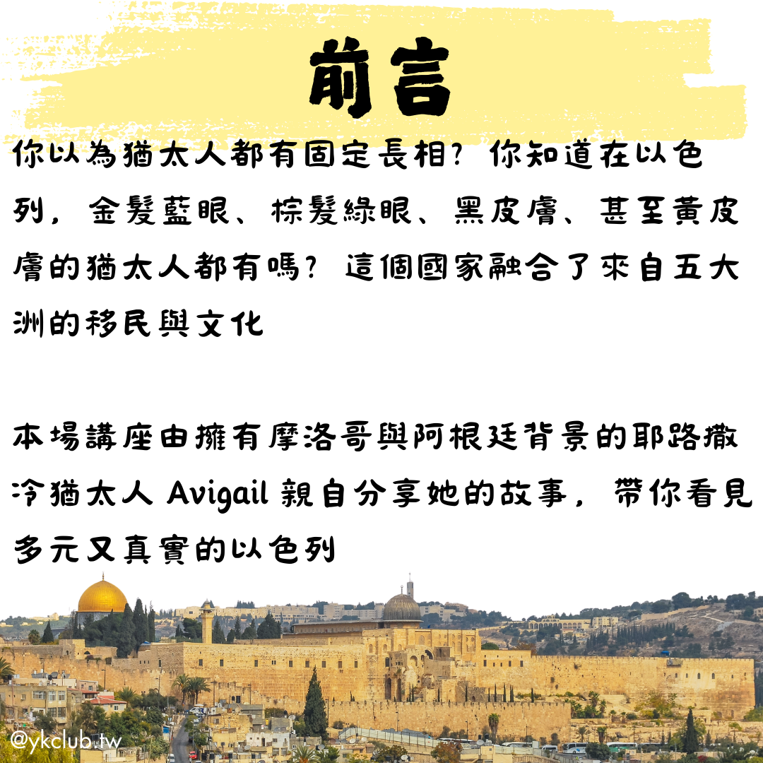 【講座+美食】以色列不只一種樣貌:讓當地人帶你走入人文現場 Human Diversity in Israel