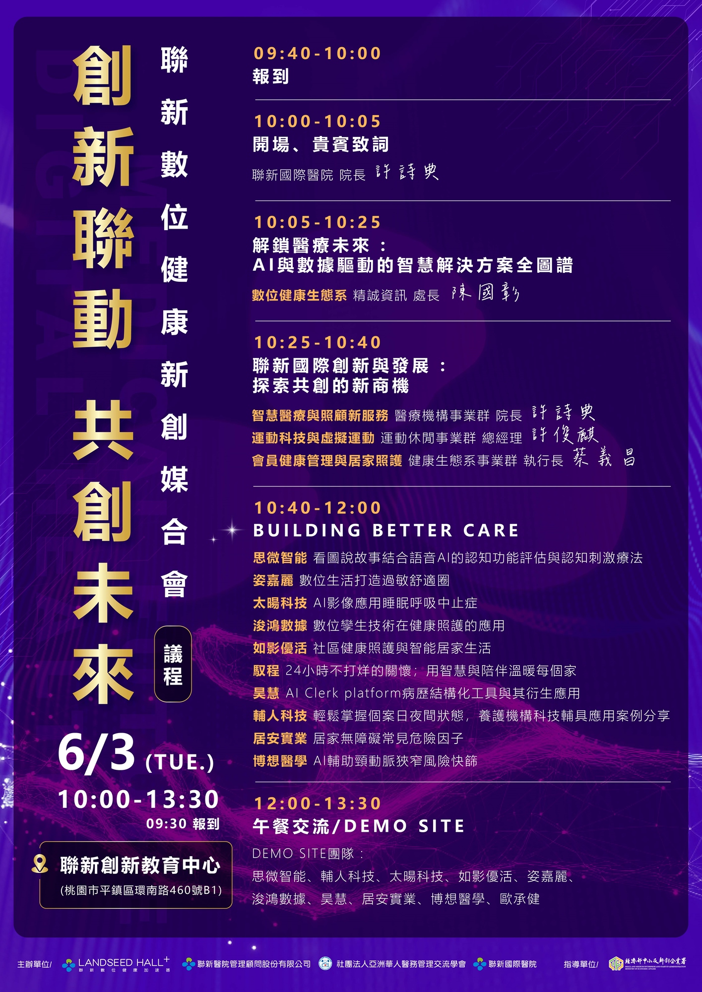 - 主辦單位: 聯新數位健康加速器(聯新醫院管理顧問股份有限公司)、社團法人亞洲華人醫務管理交流學會、聯新國際醫院