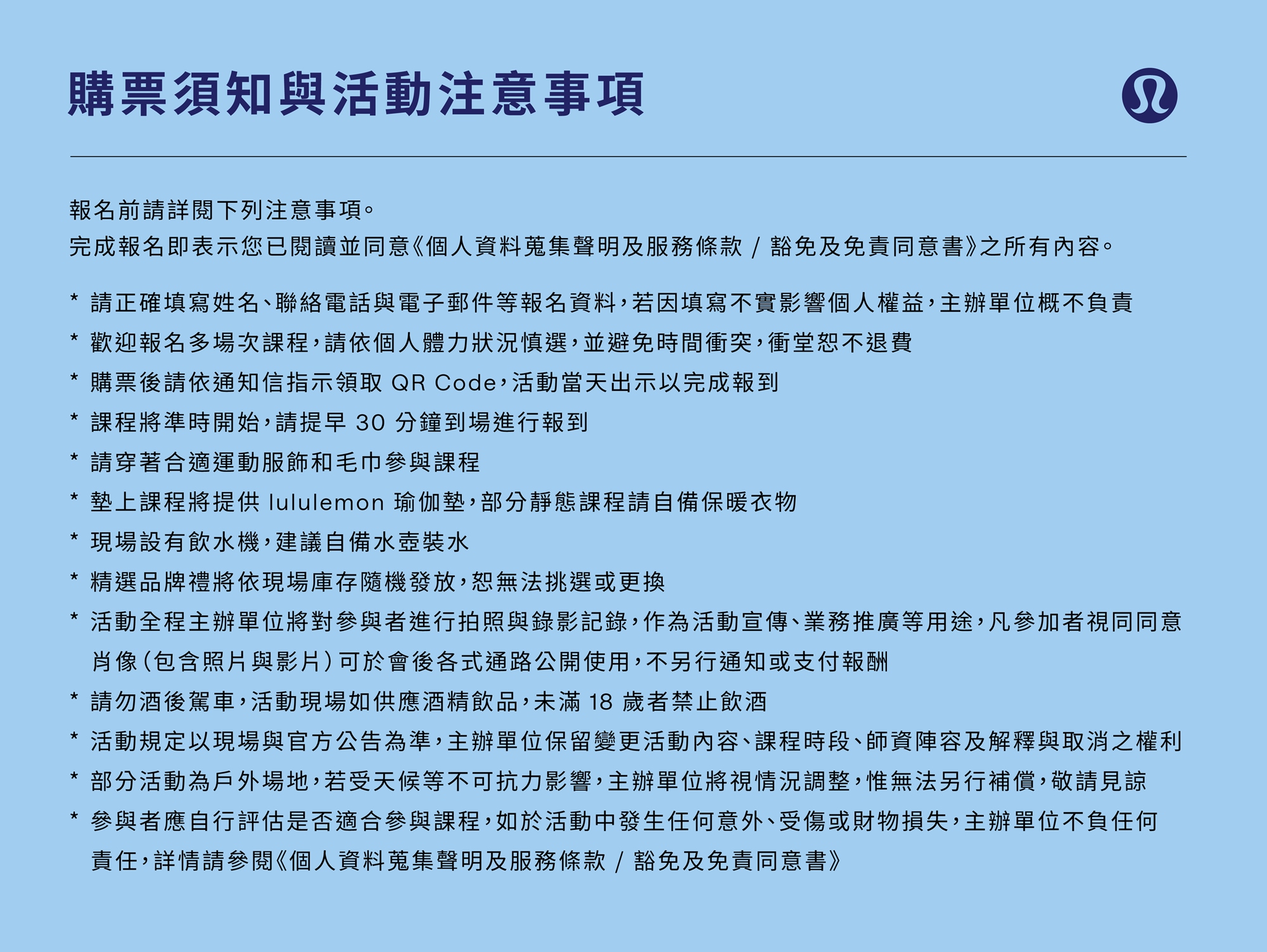 完成報名即表示您已閱讀並同意《個人資料蒐集聲明及服務條款 / 豁免及免責同意書》之所有內容。