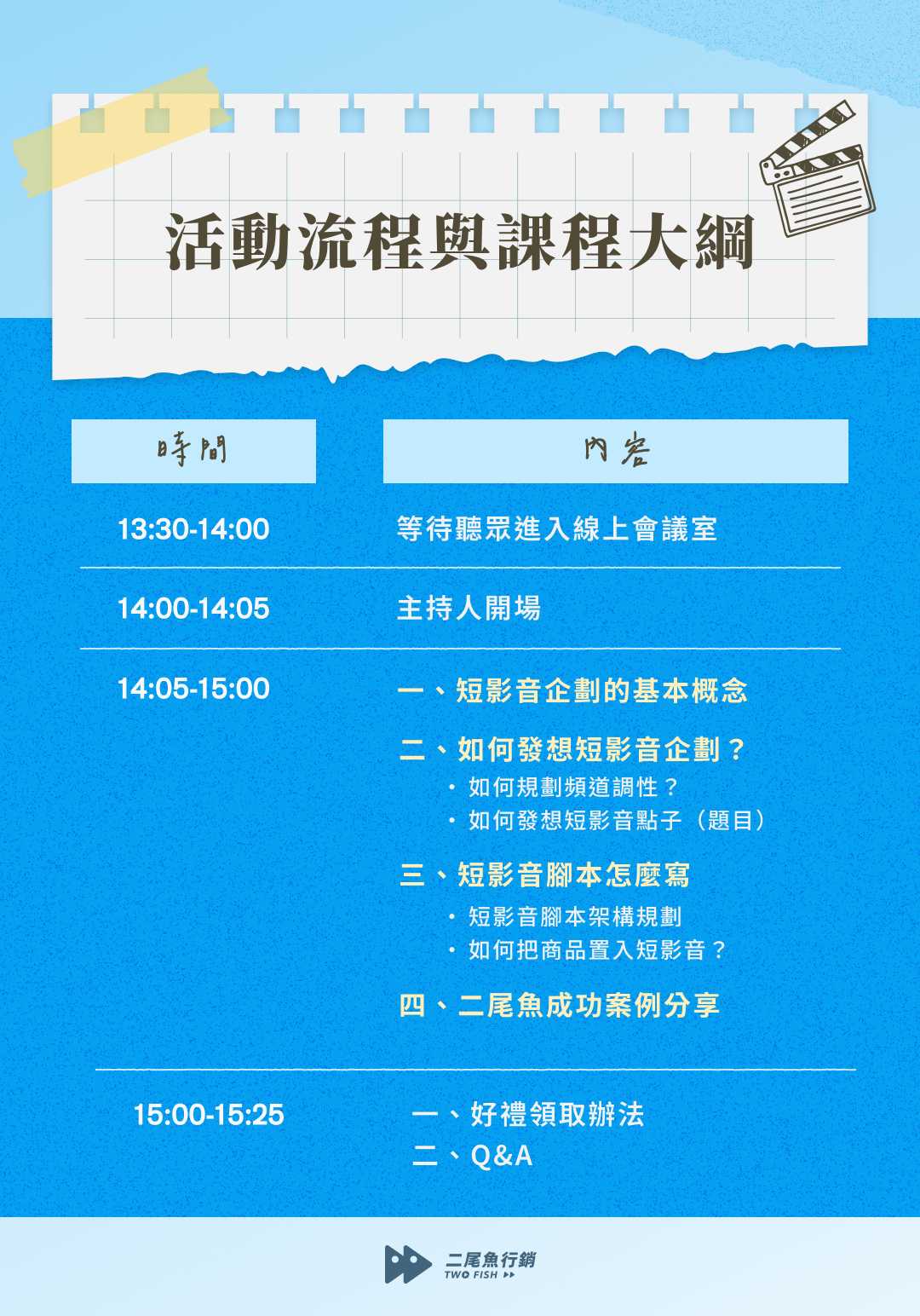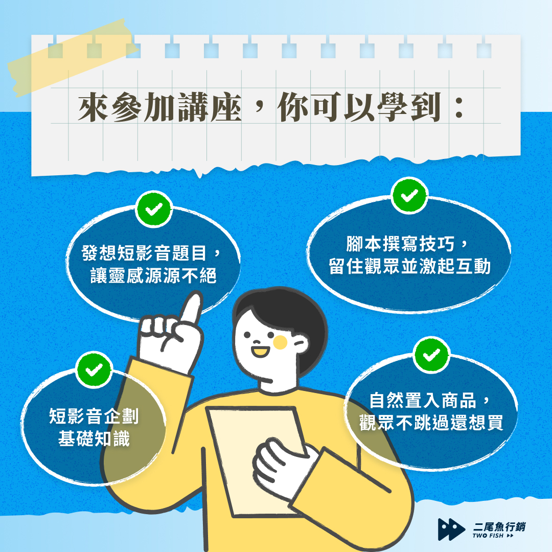 立即報名參加,一起跟著二尾魚,解鎖短影音爆紅關鍵!