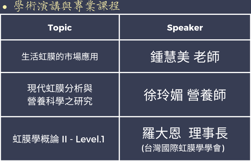 無論您是養生愛好者、醫療與健康產業從業者,或是對虹膜學與自然醫學及輔助醫學領域感到興趣,這系列課程都將為您打開一扇認識自我、守護健康的全新大門!