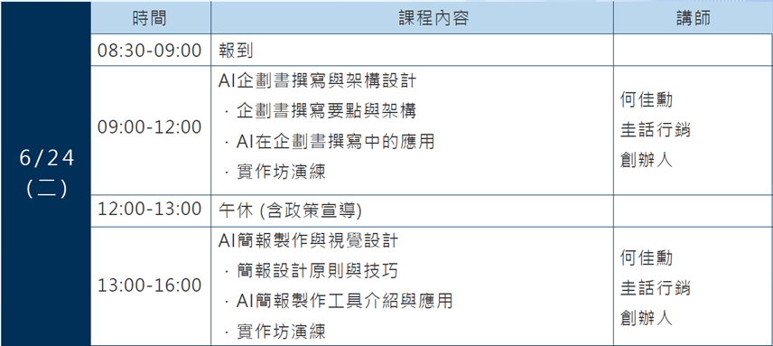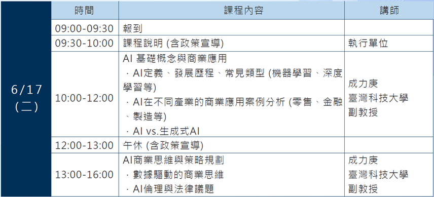 由臺北市政府全額補助(備註:若缺課超過該梯次總時數三分之一將取消未來申請「企業AI應用實務培育課程」系列課程之資格)。