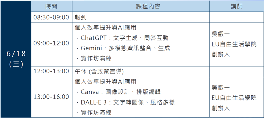 第一梯:【AI基礎知識與工具應用實戰班】活用AI工具,打通工作流程、提升效率!