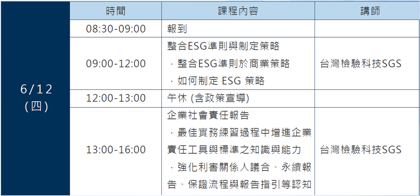 「GRI永續性報導」課程將帶領學員學習:GRI準則、AA 1000準則、ESG風險與機會、整合ESG準則與制定策略、企業社會責任報告等內容,全程參與課程並通過測驗者可獲得國際認證證書。