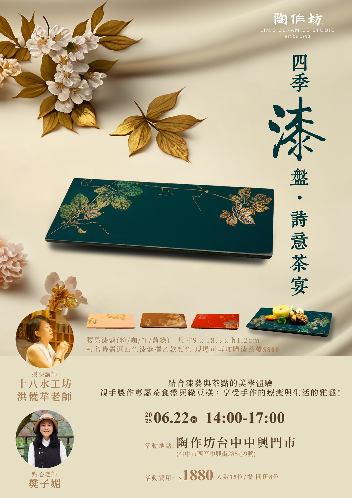 報名時需選四色漆盤擇一款顏色(現場可再加購漆茶盤 加購價$800)