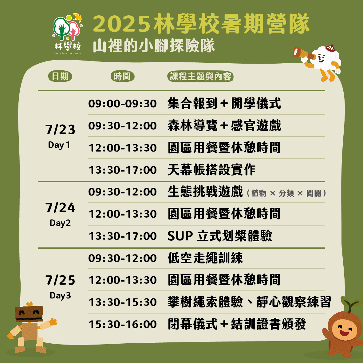 ✔ 課程承接林學校理念,引導學員以身體力行體驗自然、探索自我。