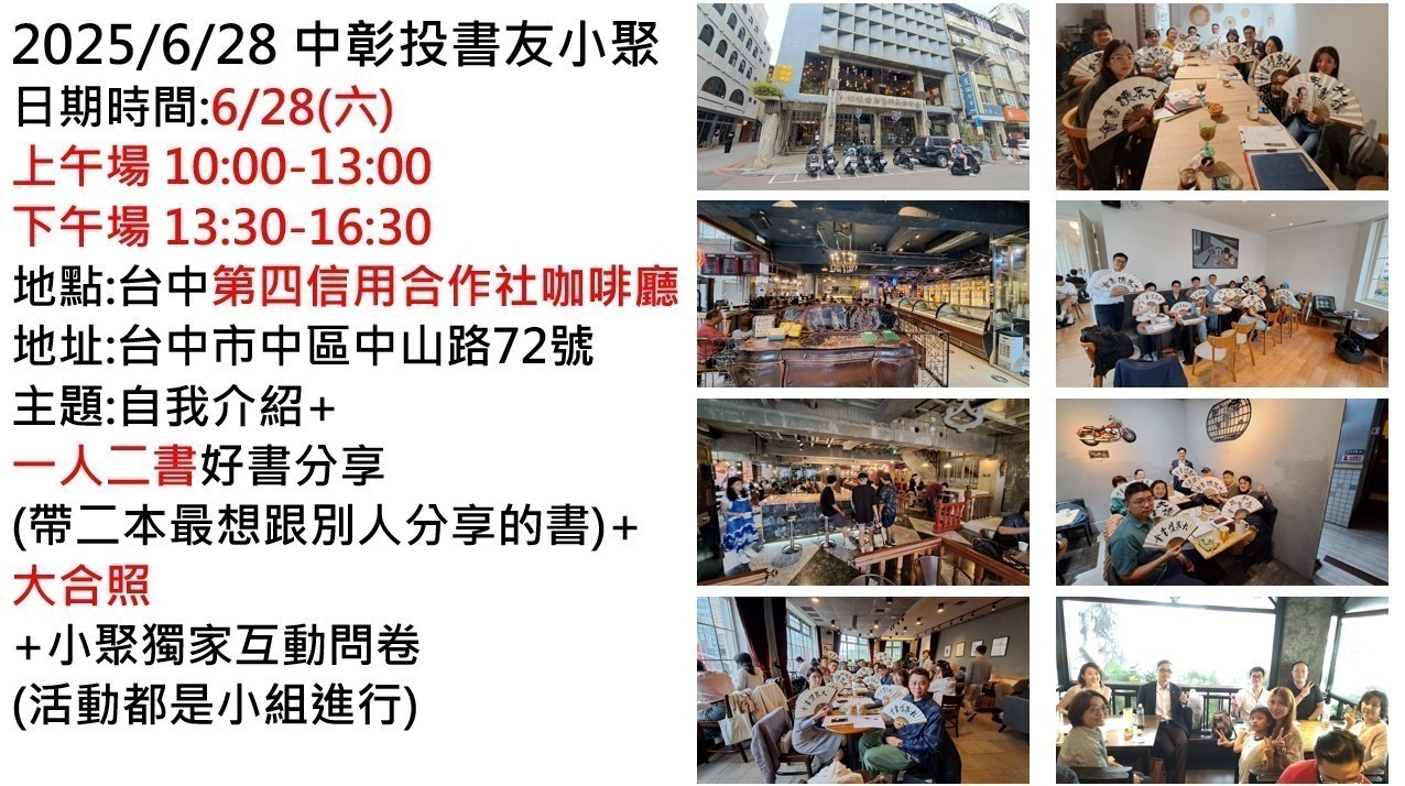 大眾讀書會-中彰投書友線下小聚會 (中部朋友都可以來)