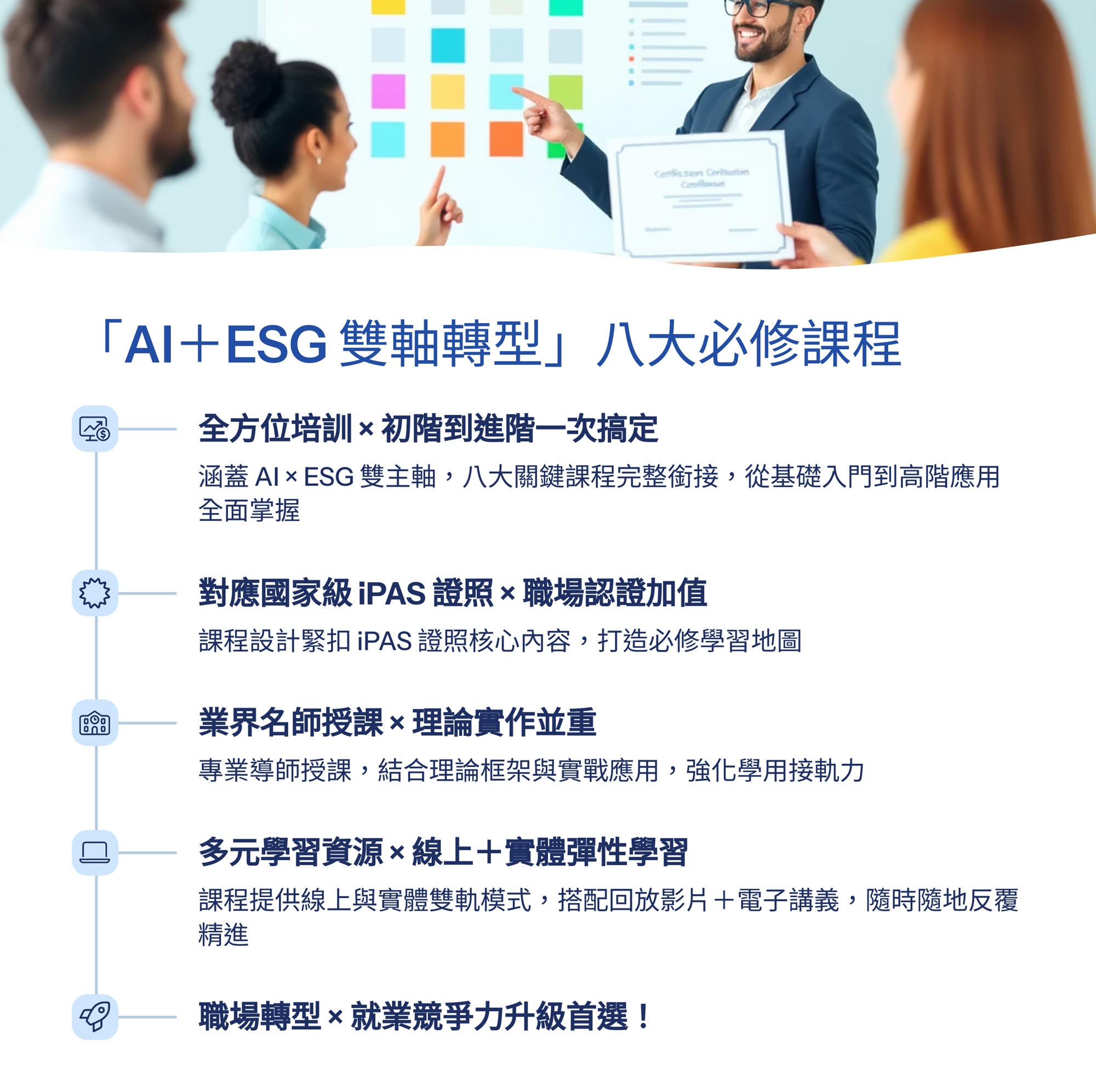 「AI+ESG 雙軸轉型」八大課程補助計劃(線上直播+影片回放)