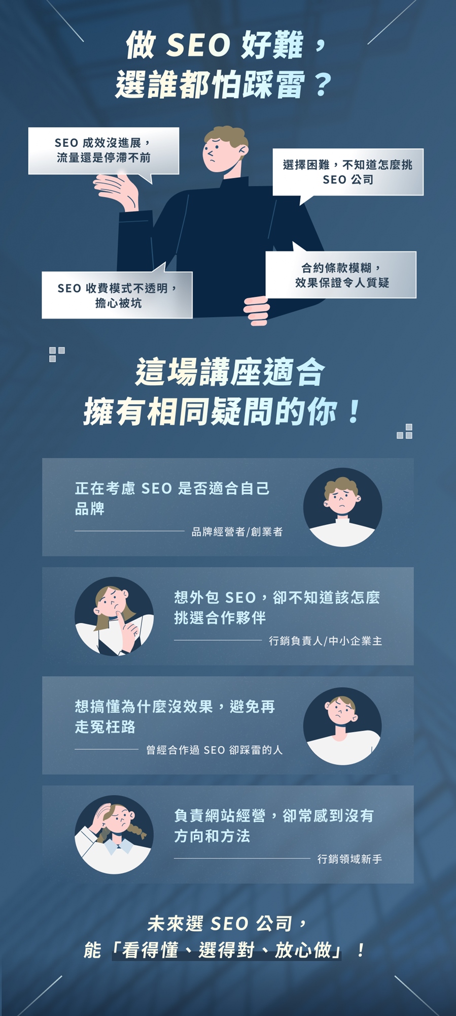 聽聽看 SEO 專家有什麼樣的看法與建議,以及挑選 SEO 公司應該注意哪些事情避免踩雷呢?