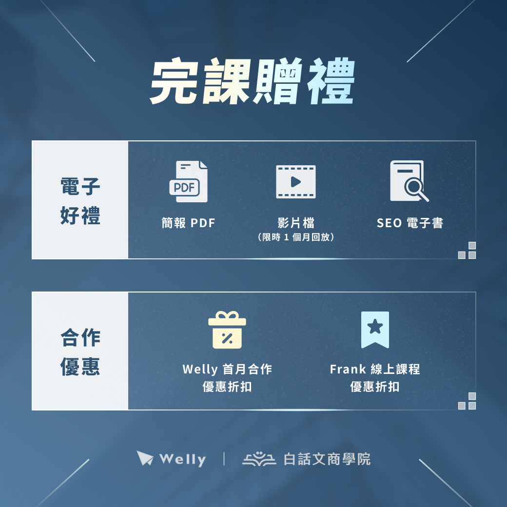 - Welly SEO 業務合作優惠(活動當天公佈)