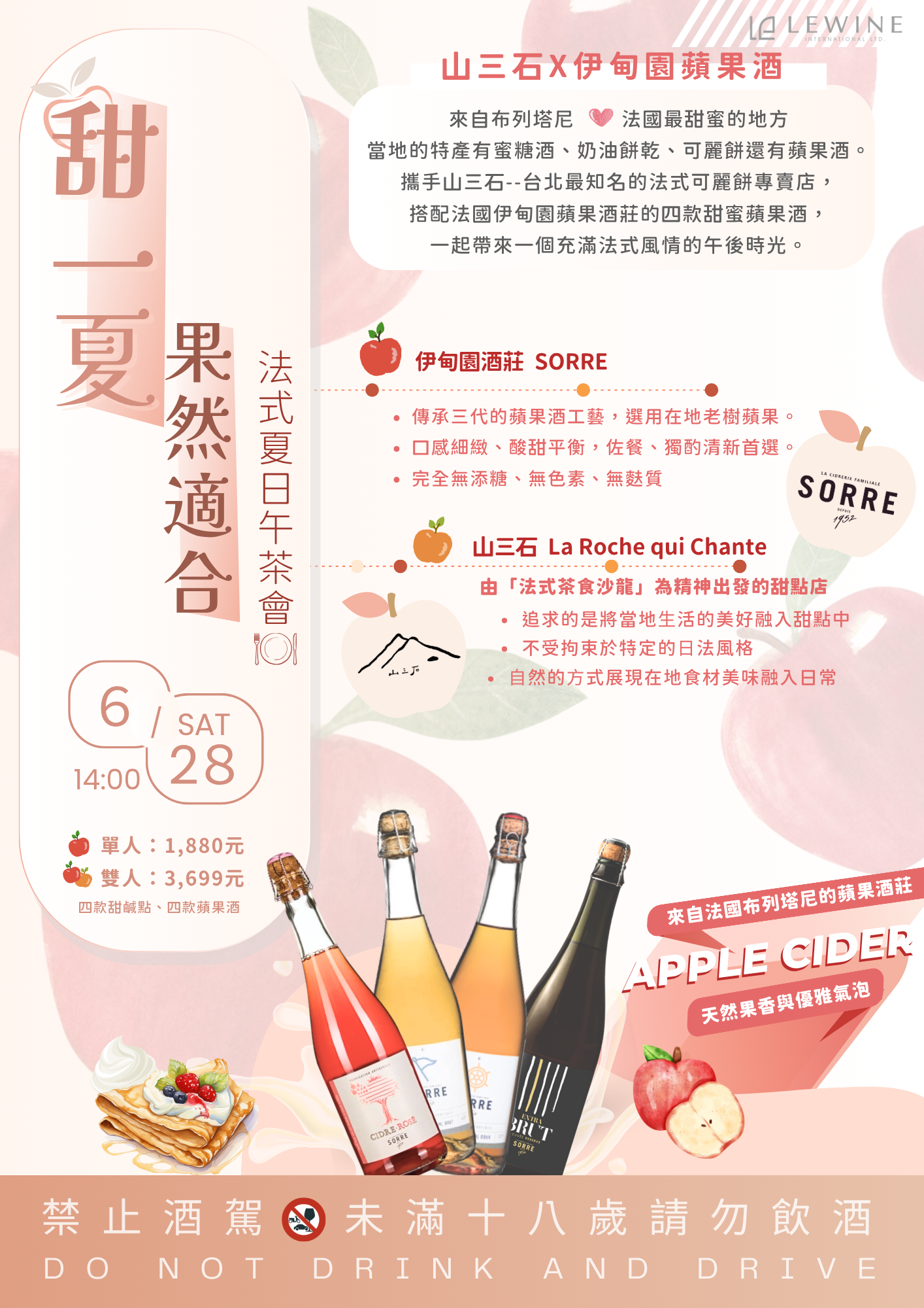 搭配法國伊甸園蘋果酒莊的四款甜蜜蘋果酒,一起帶來一個充滿法式風情的午後時光。