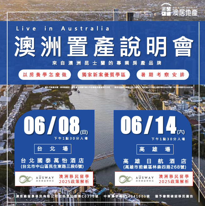 國外不動產投資,具有風險性,請投資人詳閱行銷文件並審慎考量後再行交易 澳居地產股份有限公司/經紀人 林宰賓113年新北經字第004640號/中市仲商證字D0495號