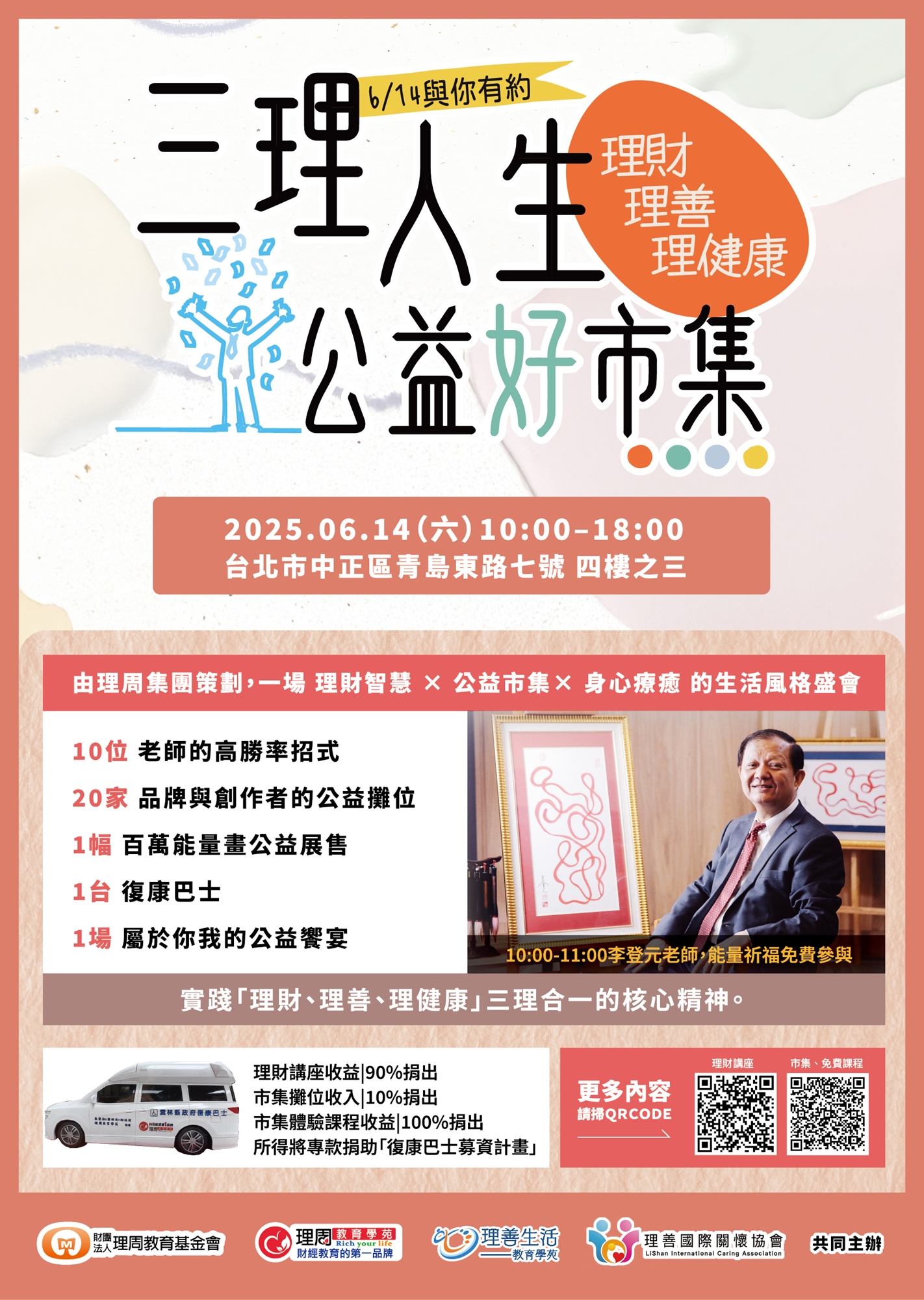 「三理人生公益好市集」是一場結合理財智慧 × 公益行動 × 身心療癒的生活風格盛會,