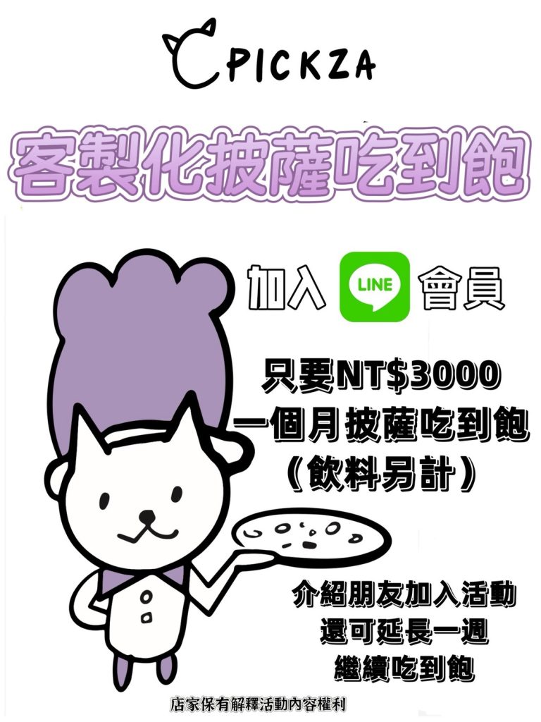 • 月繳 NT$3000,即可享披薩吃到飽(飲料另計)