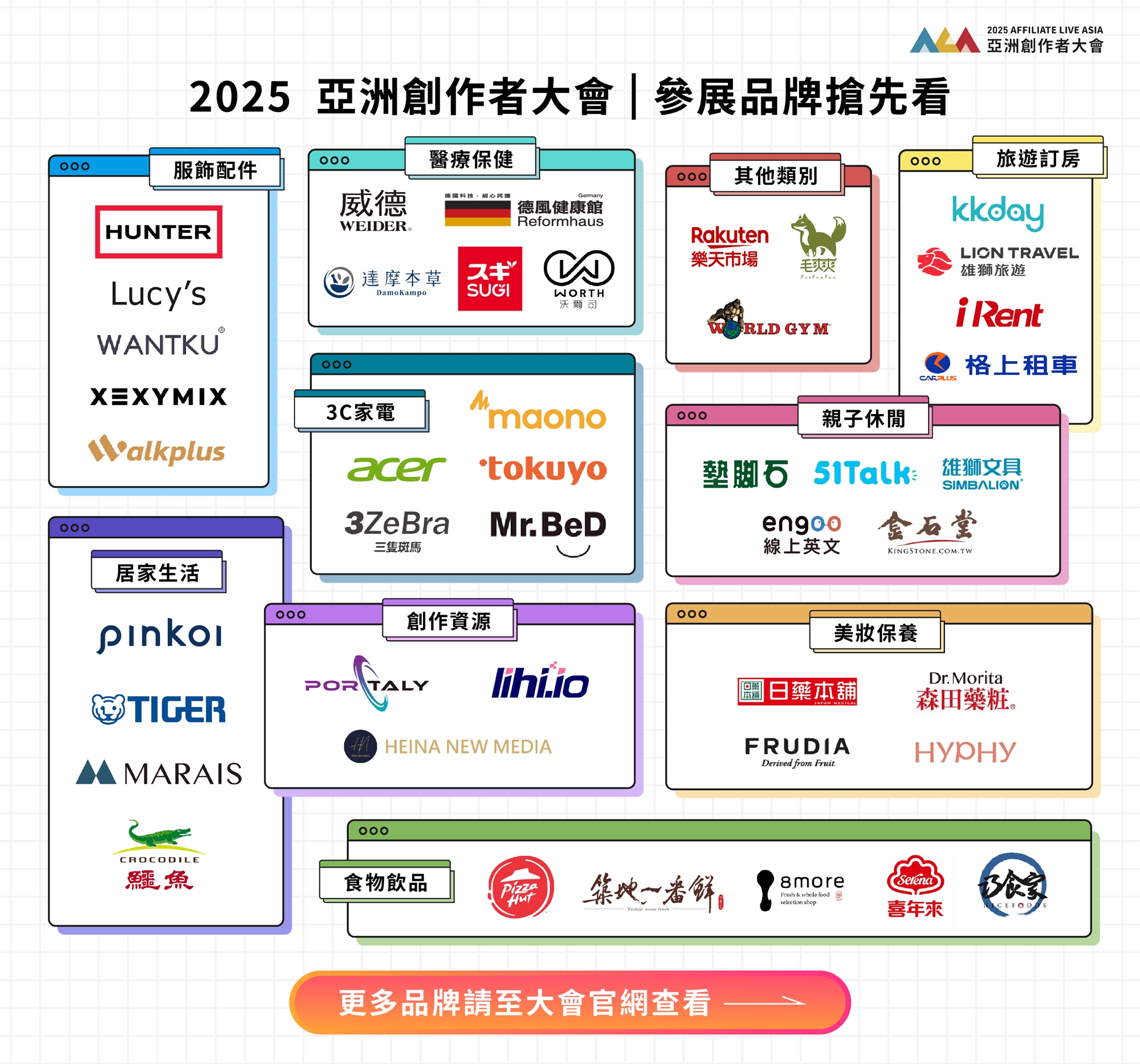 「2025 Affiliate Live Asia 亞洲創作者大會」,即將於 10/2(四)在台北大直典華6樓盛大登場!本屆預計集結超過 120 家海內外知名電商/品牌,橫跨九大產業類別:旅遊訂房、3C 家電、美妝保養、居家生活、食物飲品、醫療保健、服飾配件、寵物用品、親子休閒。目前搶先參展的品牌有KKDAY、雄獅旅遊、Acer、必勝客、威德…等,強勢品牌/電商陣容一次到位!