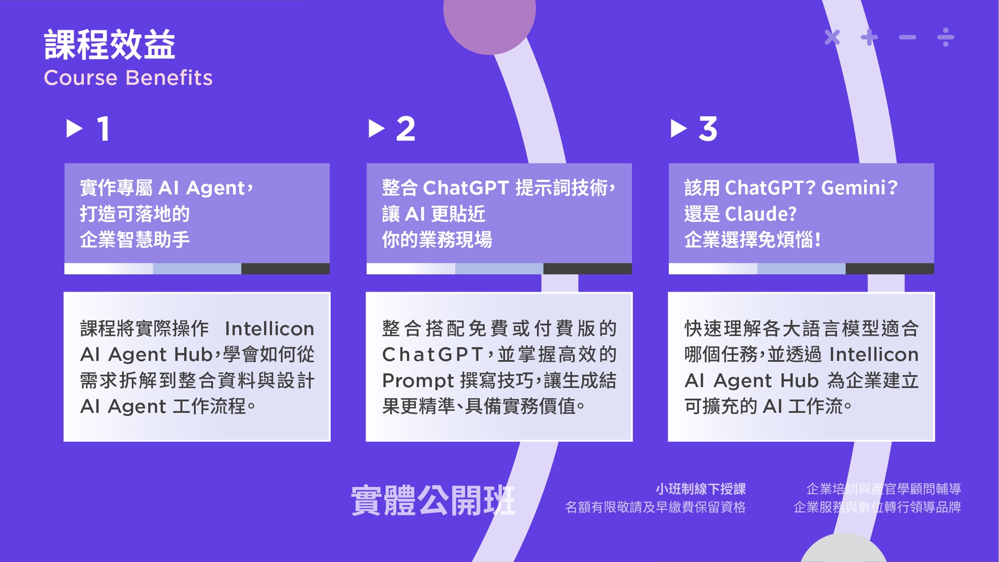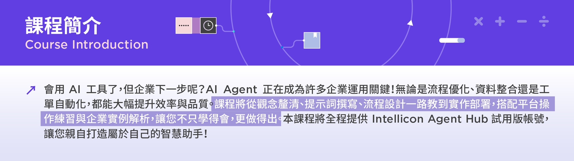 - Intellicon AI Agent Hub 1個月試用帳號(主辦單位提供試用連結與操作手冊)