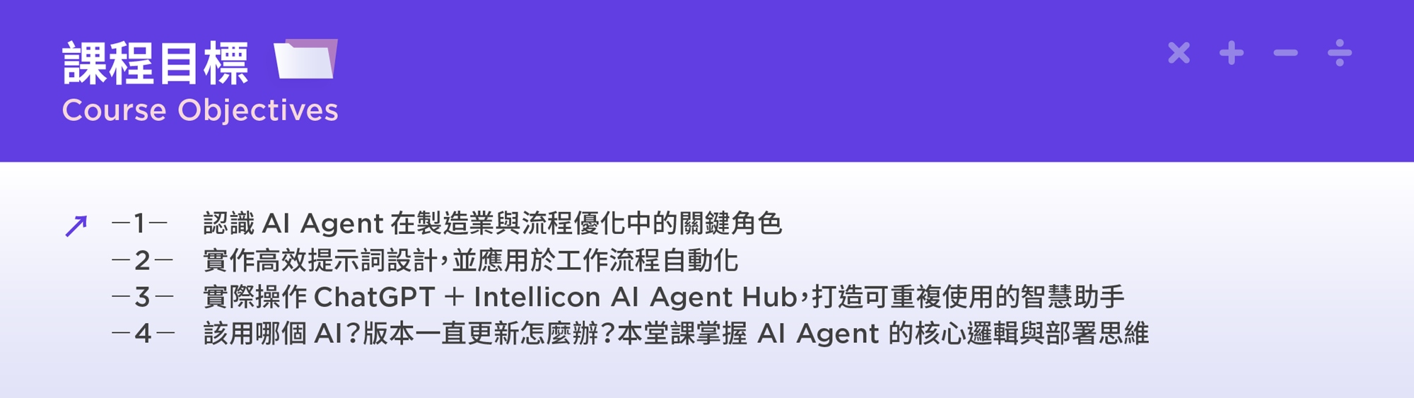 課前將提供操作手冊與試用教學說明,課後可繼續使用 Agent Hub 一個月,持續練習!