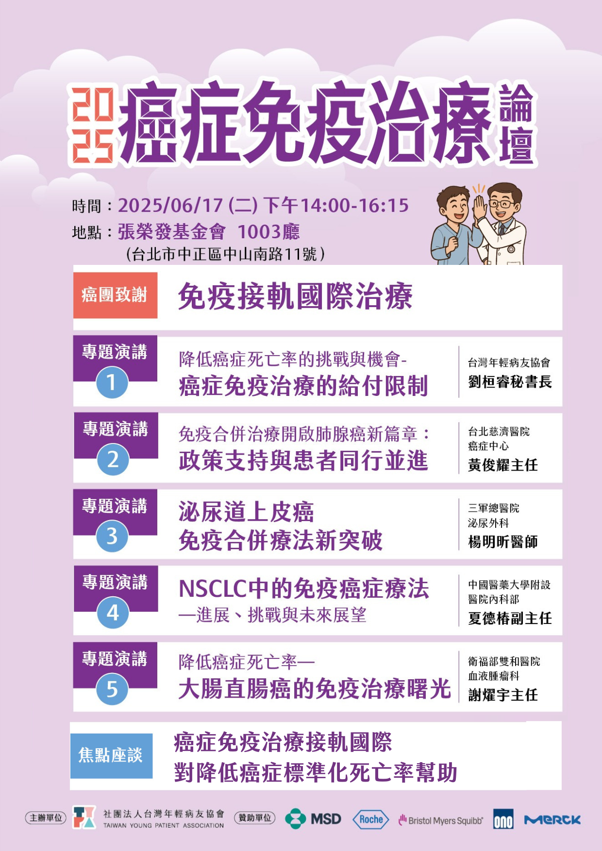 本論壇將邀請政策代表、臨床醫師與病友對話,共同更新「我們現在的進步到哪裡了」、「還有哪些關卡應該再鬆一點」。