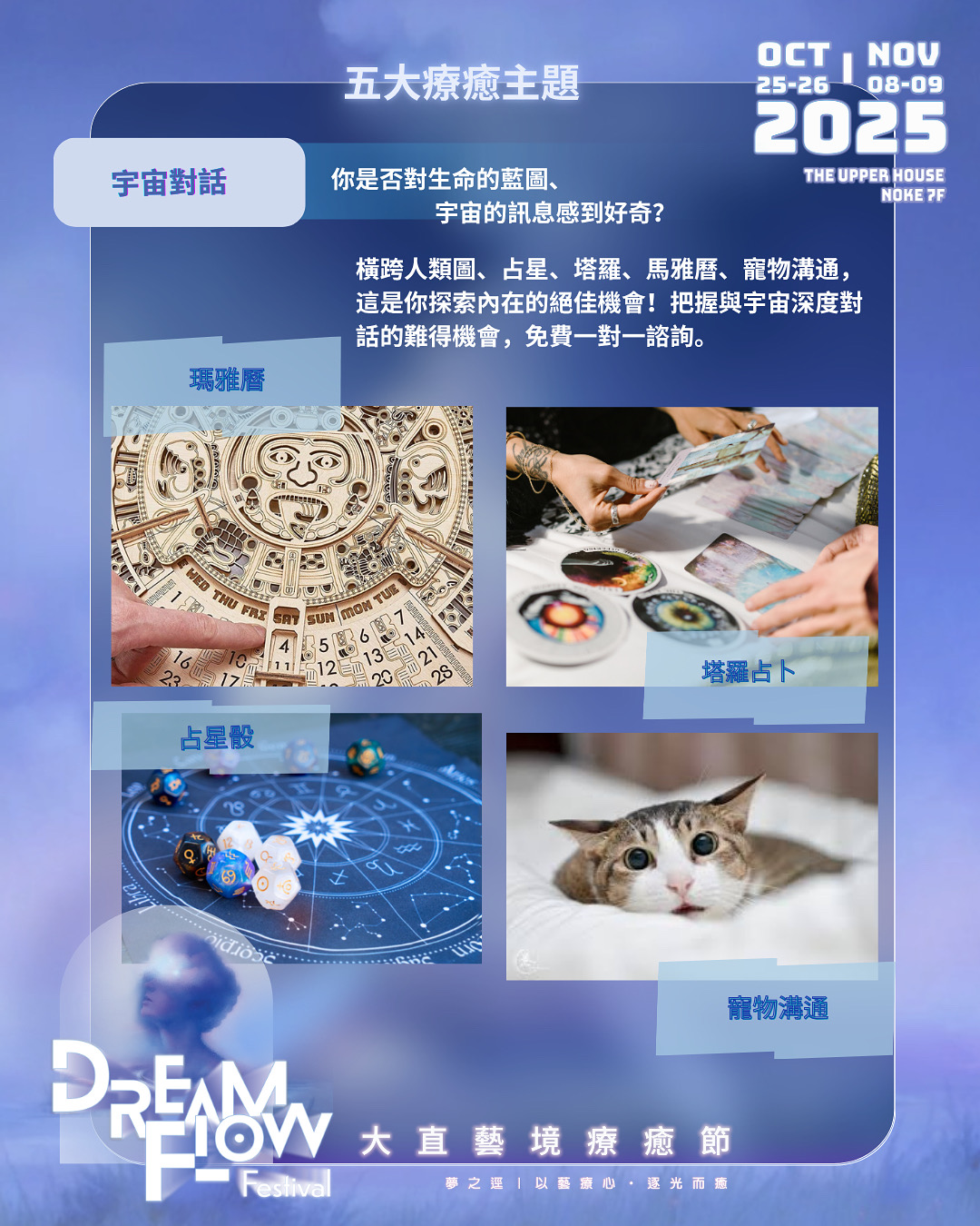 ✨ 活動包含一對一免費占星|瑪雅曆|人類圖|塔羅牌|十二原型卡|寵物溝通諮詢 ✨