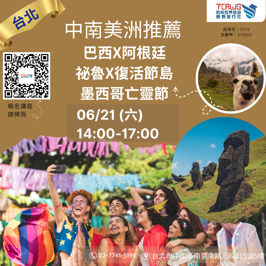 - ✈️ 南美五國一次掌握:深入巴西、阿根廷、秘魯、墨西哥、復活節島,經典路線一網打盡。
