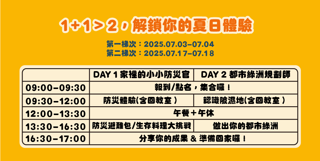 - 活動對象:暑假後升國小一年級至四年級(家長可參與,上午戶外限2位,下午室內限1位陪同)