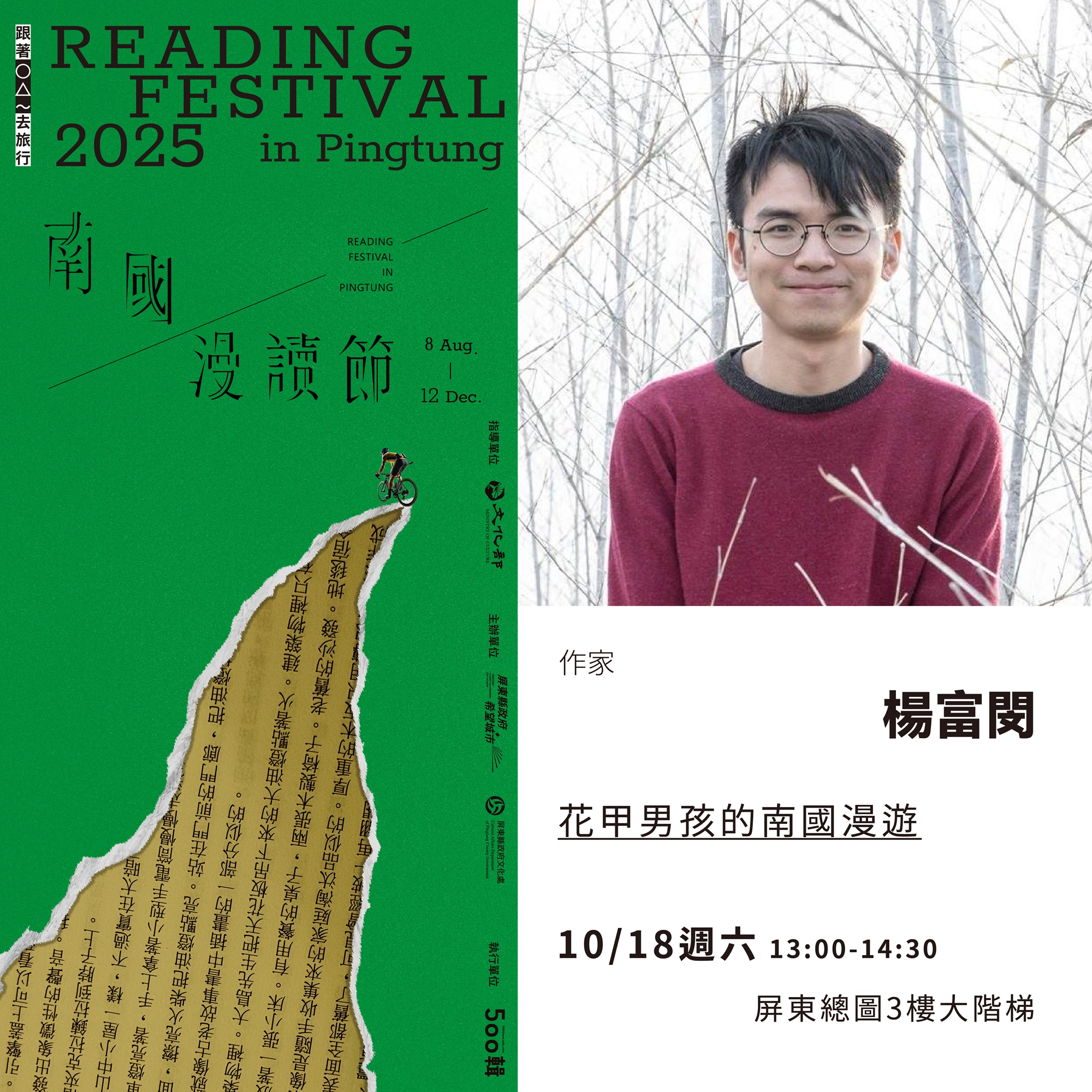 文學,你要去哪裡?二零二五年,《花甲男孩》發行十五週年。歷經電視、電影、漫畫、有聲劇等不同形式的轉譯衍生。本次演講楊富閔將回顧歷來作品,並分享文學內容與跨域製作的多重可能。
