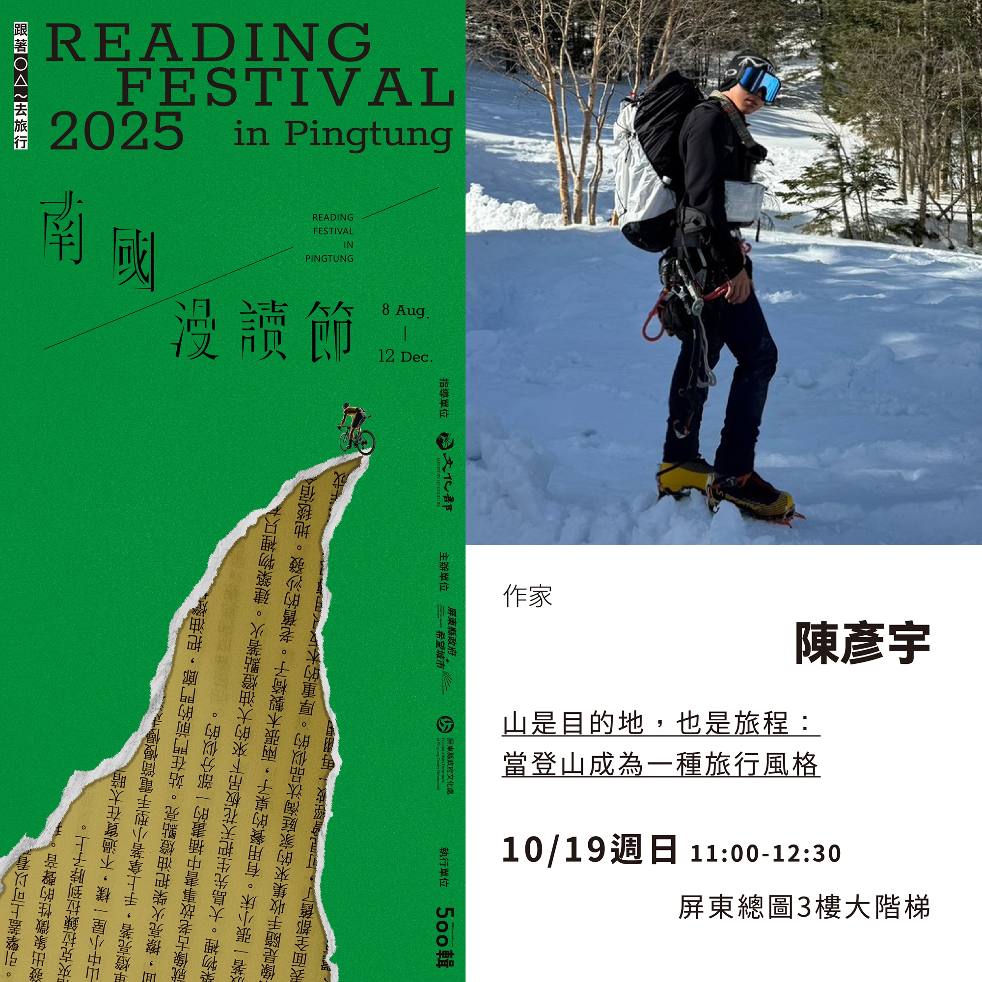 旅行不只是抵達風景名勝,登山也不只是征服某座高峰。當我們踏上山徑,走過晨光與風雨,看見自己的呼吸與腳步,登山便成了一種旅程的方式——在自然中沉澱,在路途中與人相遇。本講座將分享我走過的台灣與海外山路,從百岳縱走到文化古道,在裝備與行程之外,也聊聊那些讓我選擇把登山作為生活與旅行風格的理由。無論你是登山新手、戶外旅行愛好者,或是想讓旅行更有感的人,都歡迎一起來聽山的故事,重新定義「旅程」的模樣。