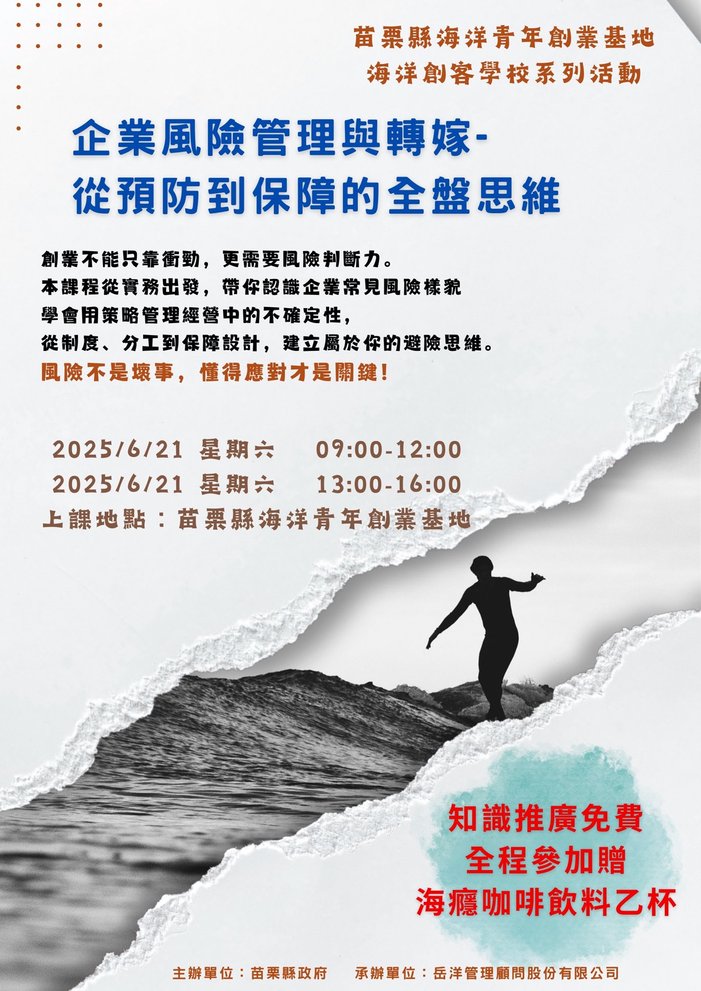 活動名稱: 海洋創客學校系列活動-06/21 企業風險管理與轉嫁- 從預防到保障的全盤思維