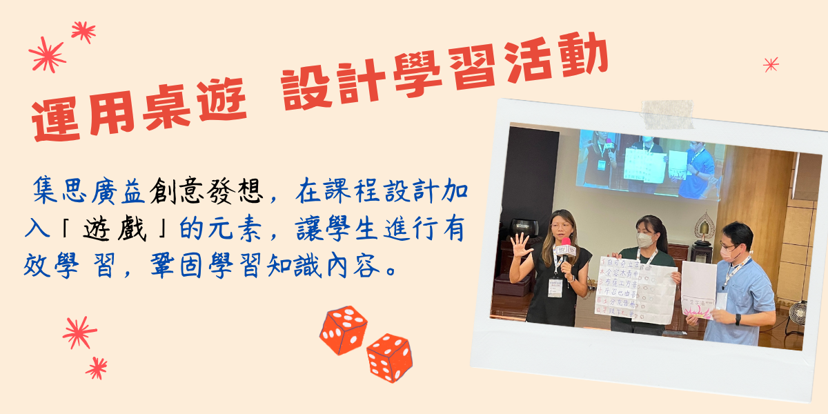 獲 資源共享:直接運用講師於教育現場滾動修正後,共鳴度佳的優質桌遊教案。