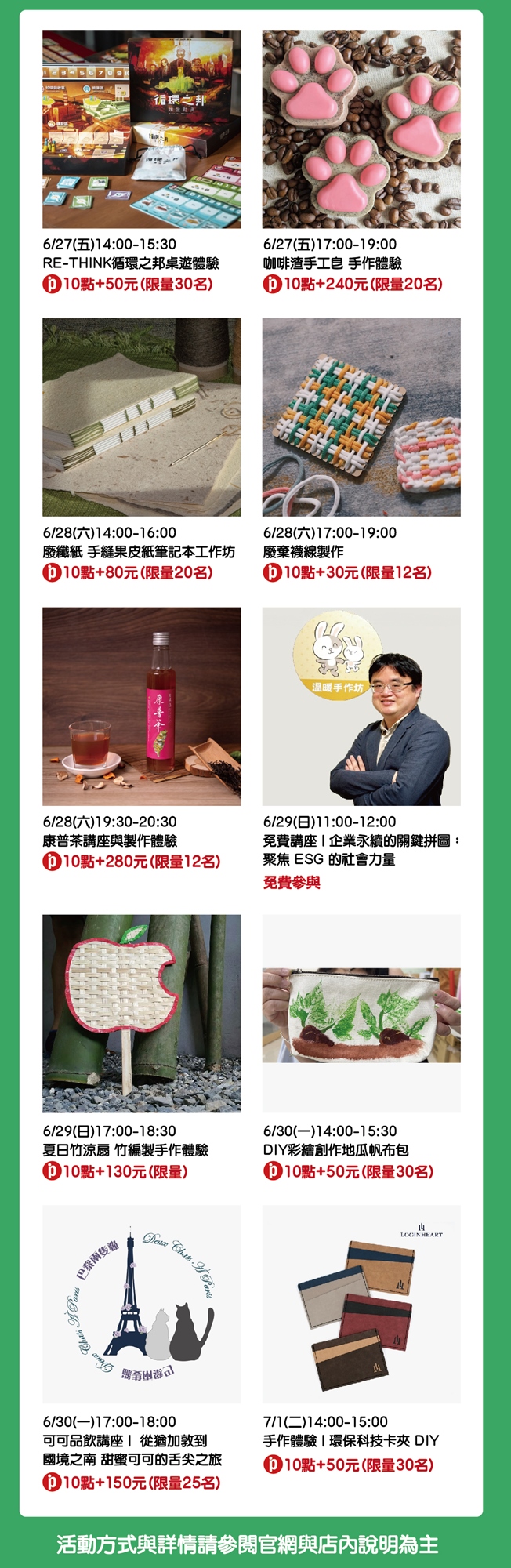 💚10場桌遊 × 永續講座 × 多元手作體驗天天登場